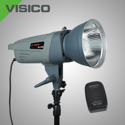 Вспышка студийная с рефлектором серии VE Plus. Наиболее подходящие для небольших фотостудий или фотографов с ограниченным бюджетом и сравнительно большим объёмом работы. В приборах имеется встроенные радиоресиверы 2.4GHz, которые позволяют управлять синхронизацией и параметрами приборов дистанционно при использовании радиотриггера VISICO VC-801TX.